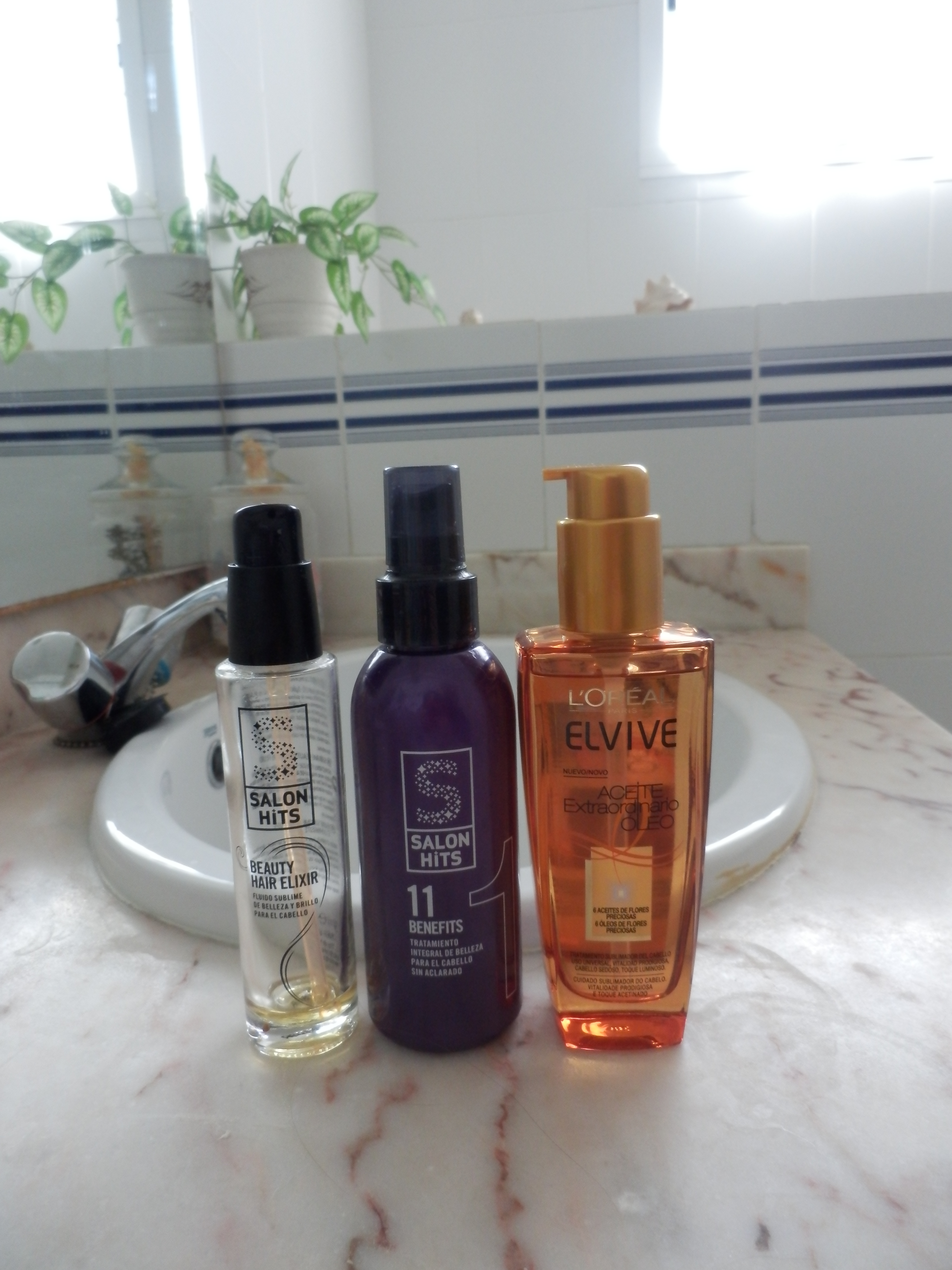 El primero de ellos es el aceite para cabello. Lo utilizo una vez, dos por semana o cada 15 días dependiendo de cómo veo de deshidratado el cabello. Lo aplico de medias a puntas antes de lavármelo y deja el pelo que es una auténtica maravilla. Es un auténtico chute de hidratació!!! Mi favorito es el de Salon Hits pero ahora mismo como se me ha terminado he empezado a probar el Aceite Extraordinario de L´oréal y tengo que deciros que me está sorprendiendo muy gratamente.