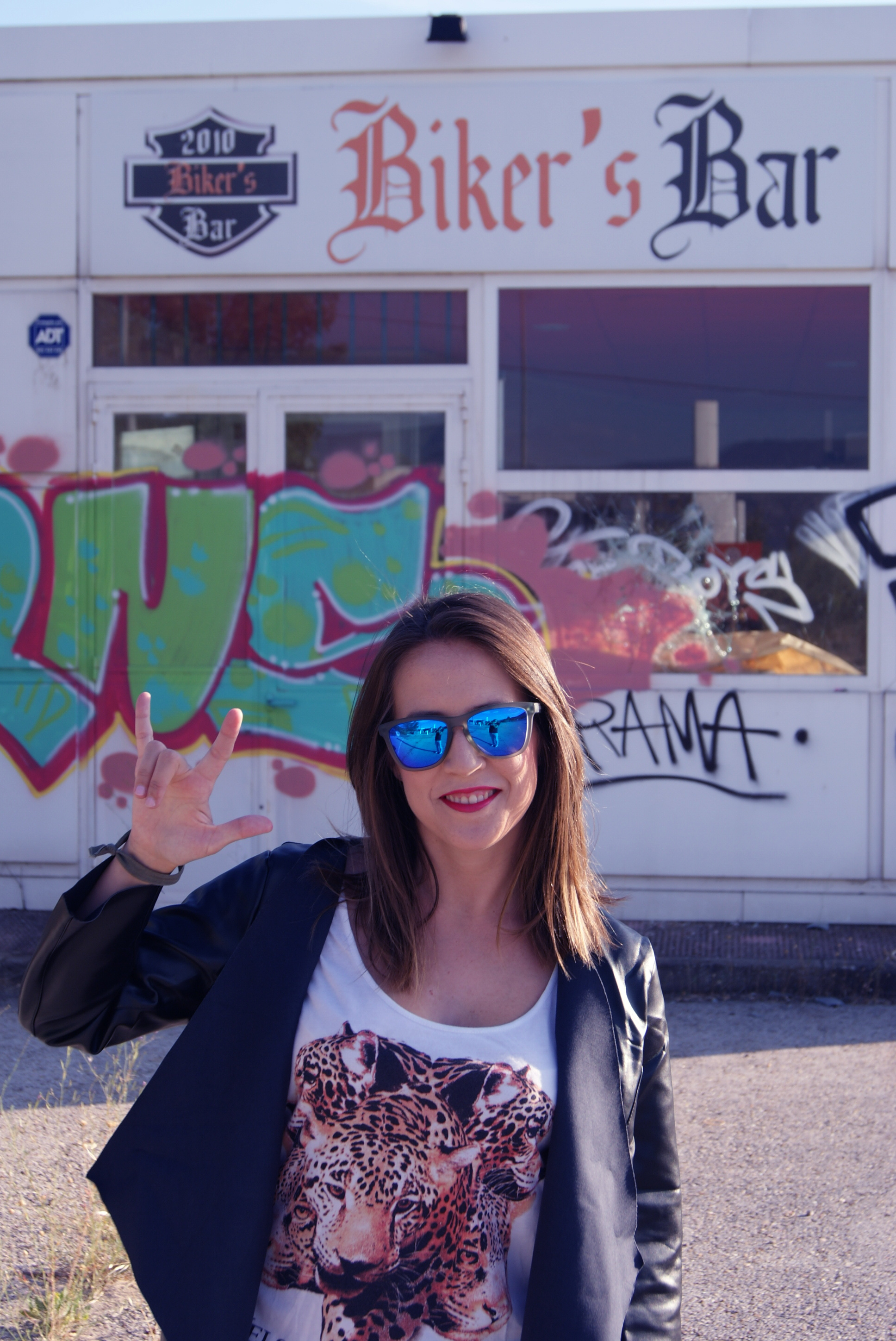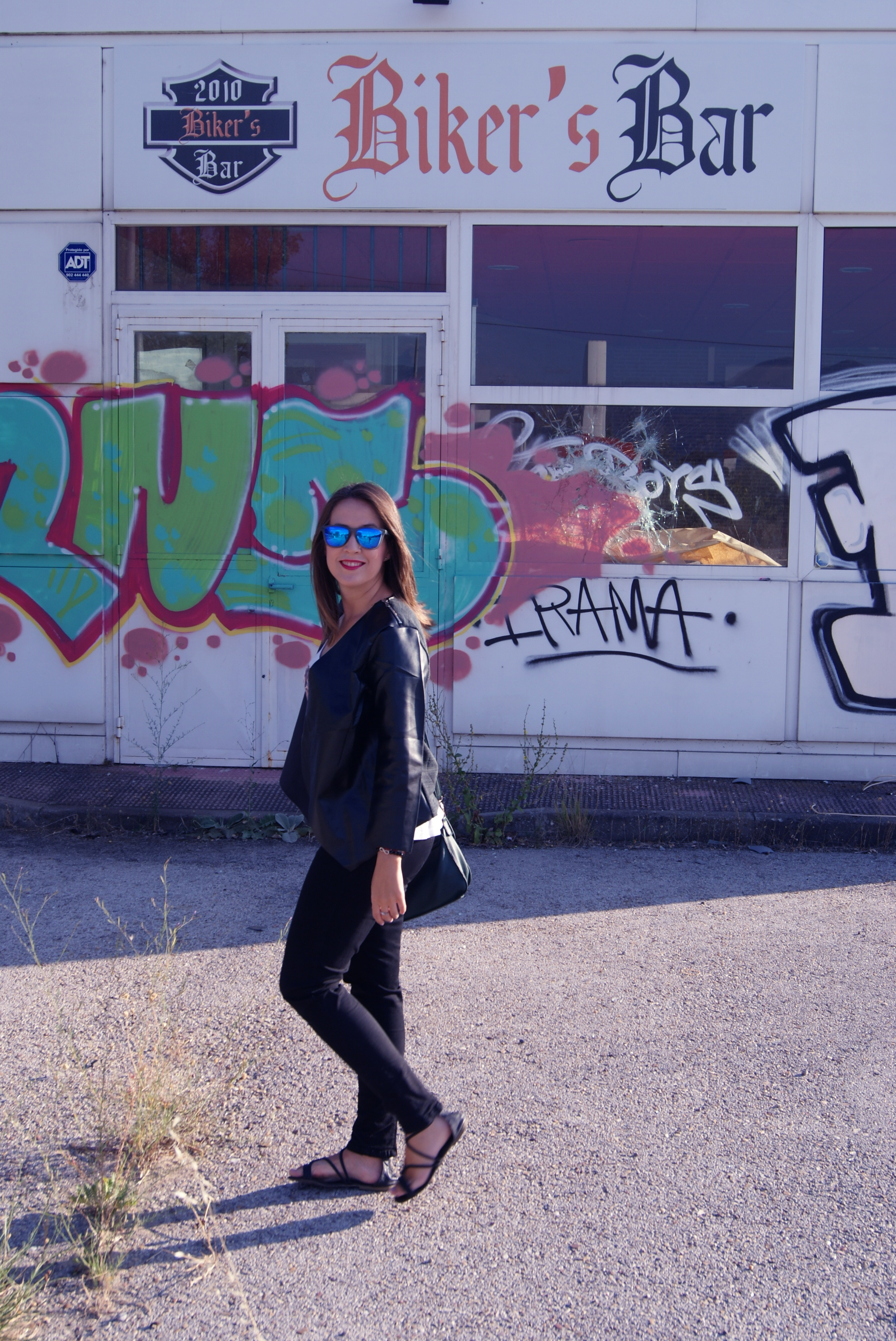 Me gusta mucho tu look, es muy yo (tanto que tengo unas gafas de sol igualitas!!!). Las chaquetas de polipiel son mis básicos las tengo en negro, rojo y un par de ellas en marrón. Quedan bien con cualquier look, con sandalias, tacones o zapatillas =)