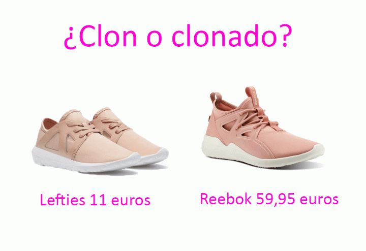 Esta semana no os puedo detallar las diferencias porque son varias. Lo que si os puedo contar es que el precio de una y otra no tienen nada que ver. Las zapatillas de Reebok cuestan 59,95 euros mientras que las de Lefties las encontramos ahora mismo en temporada por solo 11 euros. Sí que es cierto que las originales no son carísimas, pero la diferencia es importante entre una y otra ;).