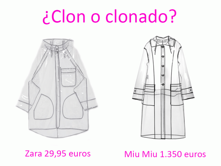 ¡Hola a tod@s! Estamos a mitad de semana y toca nueva entrada de «Los miércoles al clon». Esta vez más que un super clon como en otras ocasiones, se trata de un parecido razonable. Y es que Zara ha creado una alternativa relativamente low cost bastante divertido del genial chubasquero transparente con ribetes de Miu Miu que tanto está dando que hablar esta temporada. Parece que las prendas con pvc van estar presentes en casi todas las marcas. Yo personalmente no soy muy fan de esta tendencia pero nunca digo nunca, que nos conocemos jajajaja ;),