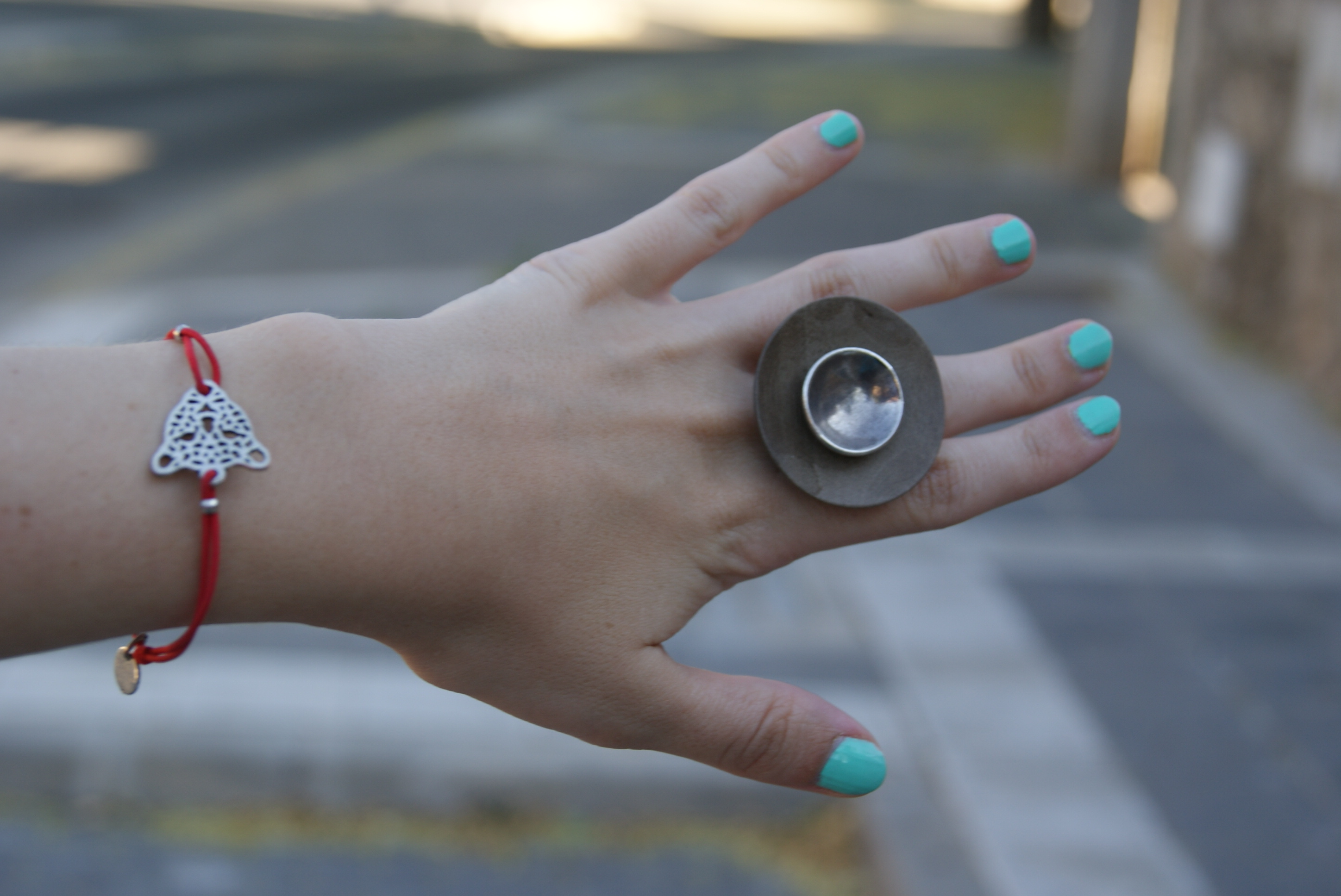 Buscaba un look casual y para ello lo he combinado con jeans, botas calentitas, gorro de lana y un maxi bolso badolera que compré hace años en mi viaje a Estambul y que me encanta. Para darle el punto chic y rockero al mismo tiempo no he podido resistirme y he sacado de paseo un precioso anillo de calavera de La Coquetería y una de mis pulseras favoritas de Rue Lolita, mi Gina en tono azul. Y como también en invierno hay que proteger la vista he optado por unas alucinantes gafas de sol polarizadas de Roberto Martin que son amor del bueno!!
