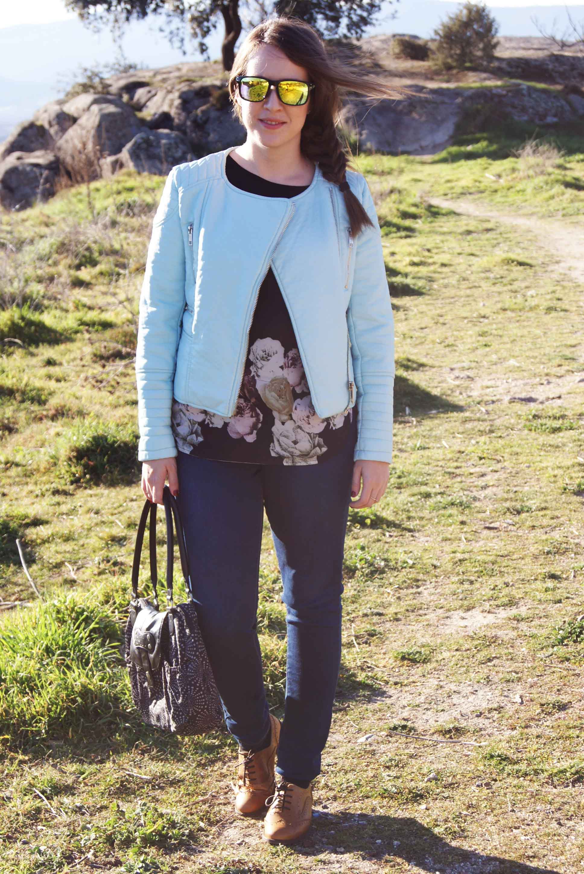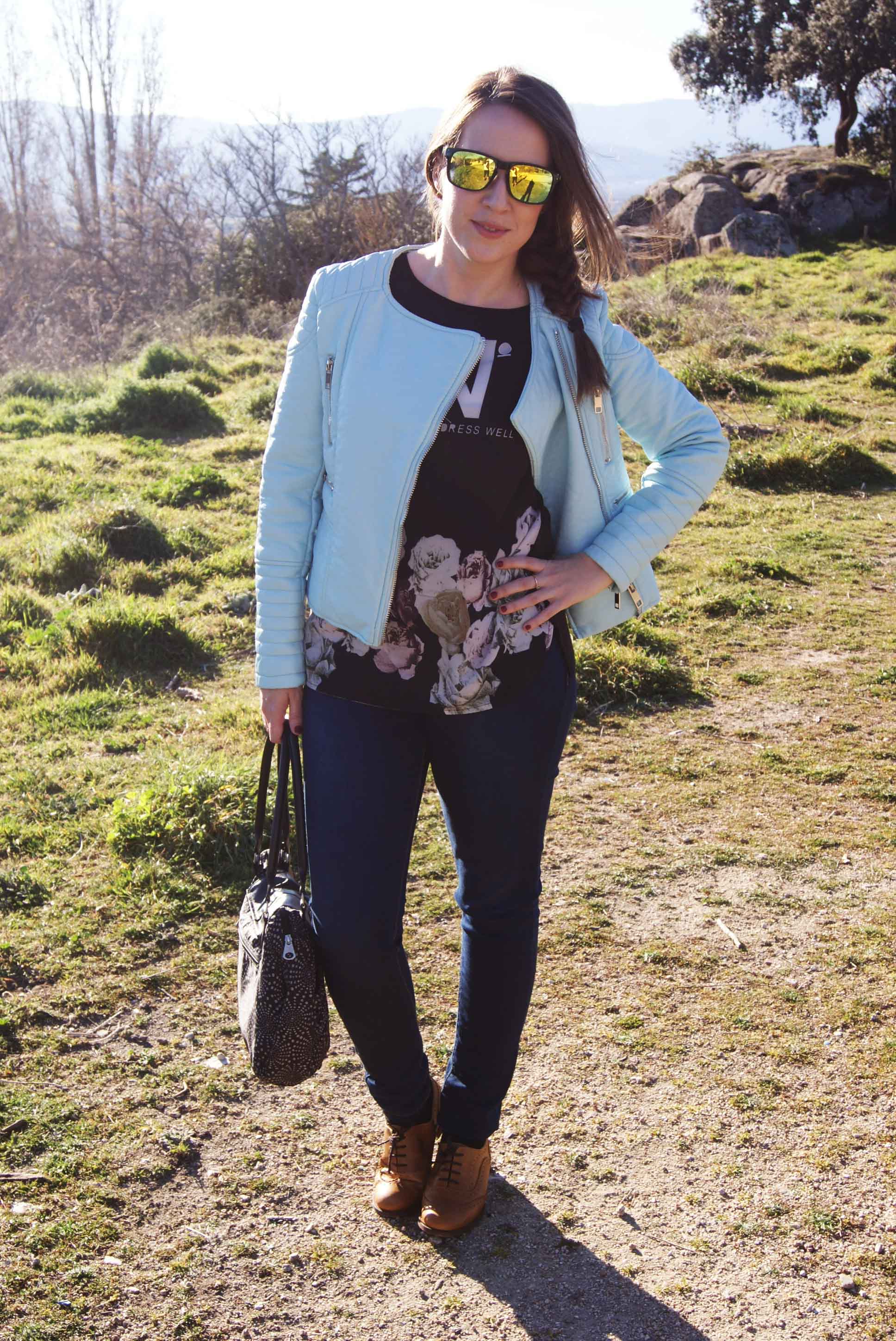 Los colores pastel vuelven esta temporada pisando fuerte y yo encantada porque son de mis preferidos, quedan preciosos en cualquier look. Una de las prendas que más me gustan en estas tonalidades son las bikers como esta tan bonita de Sheinside. Es suuuper bonita. Esta vez quería que fuese la protagonista total y para ello la he combinado con unos jeans, una camiseta negra con un toque floral y unos oxfords neutros. Y para terminar de darle esa mezcla entre lo rockero y lo romántico que tanto me gusta, he recurrido a mis queridas gafas polarizadas de Roberto Martin, anillo de Sfera y una de mis pulseras favoritas de Rue Lolita.